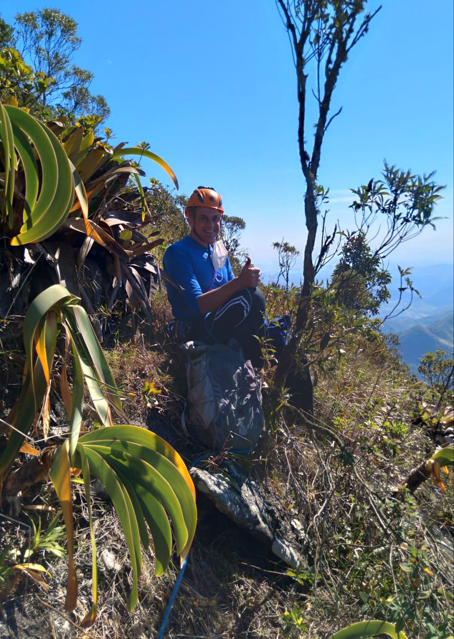 Nos esticões finais apareceu uma vegetação que atrapalhou um pouco o progresso em alguns momentos (tinha aparecido no segundo também). Infelizmente, gera algum impacto. Tentamos minimizá-lo, mas é praticamente impossível não encarar alguns trechos em que a corda fica atritando na vegetação e há o aumento do arraste. Em um ponto, passei por um vegetal que soltou uma resina na minha mão e na mochila. A resina tinha uma cola tão forte que passei a me sentir o homem-aranha! Até hoje, meses depois, há manchas permanentes na minha mochila provocadas por ela.