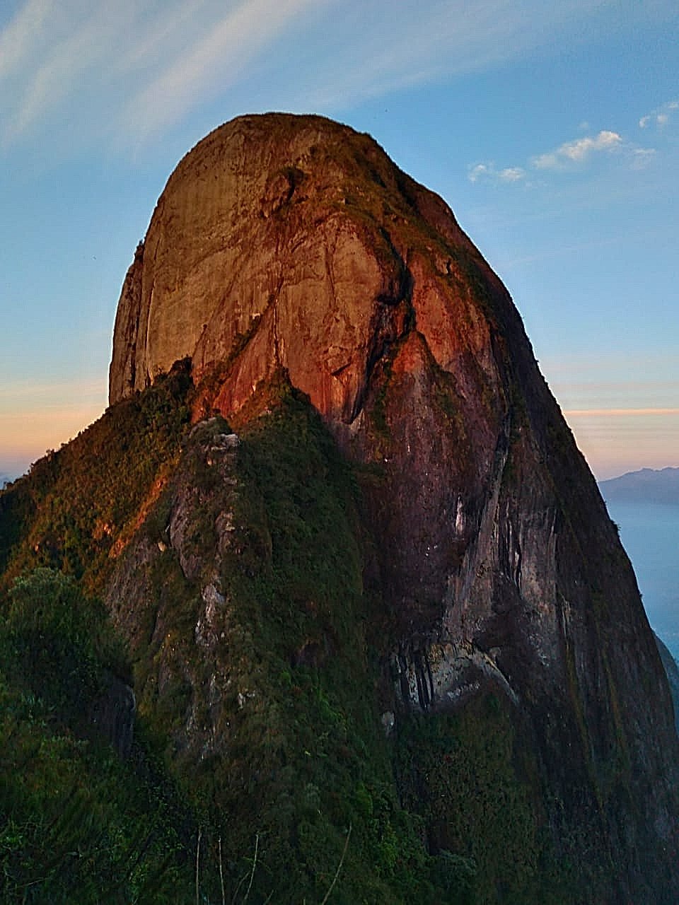 A visão clássica da Maria Comprida na rota principal de acesso à montanha. Os últimos raios de sol a deixaram com belos tons acobreados. Foto: Jeferson Costa.