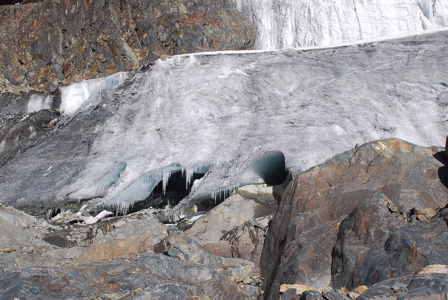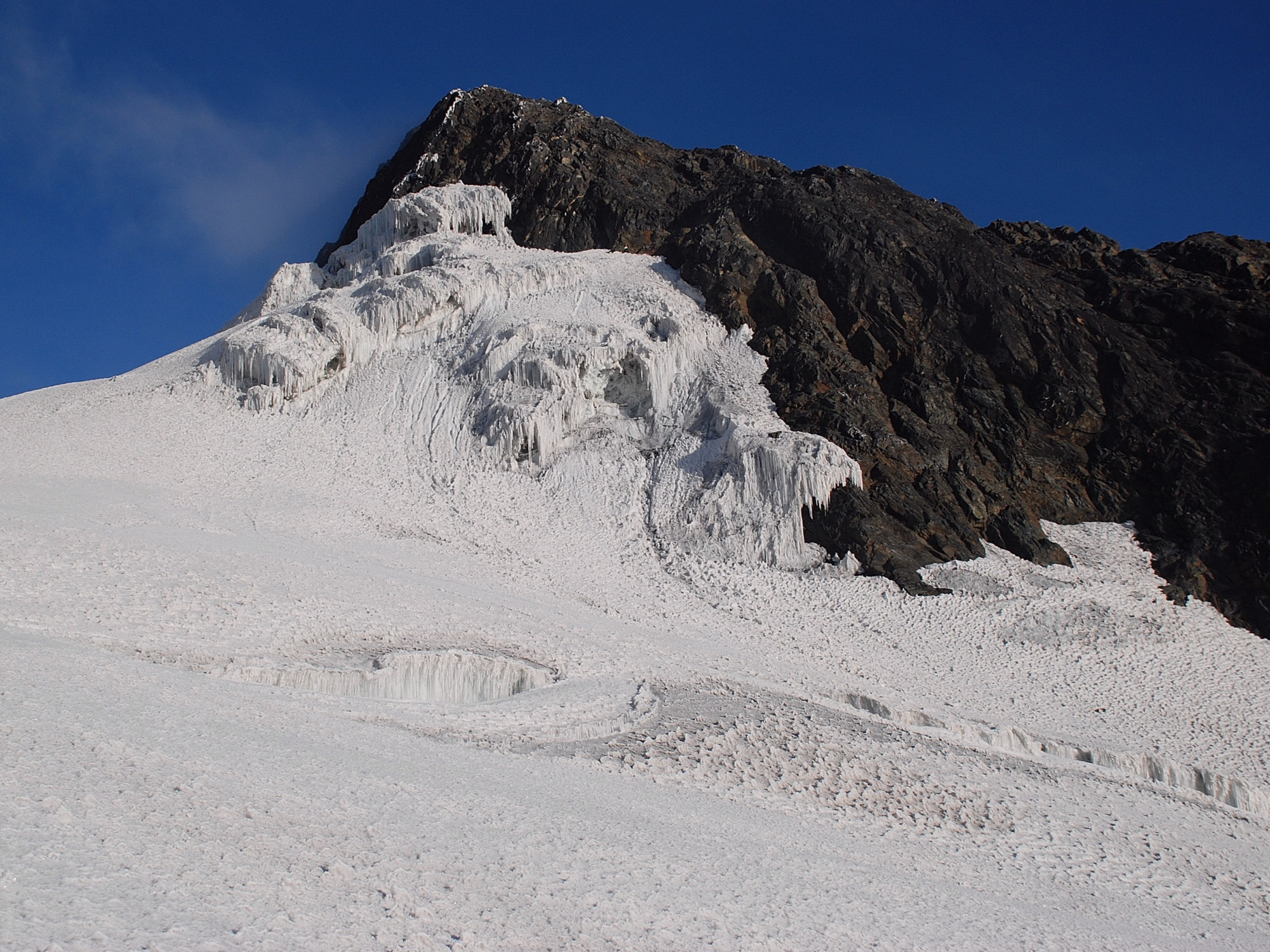 O acampamento Margherita. Meia-hora de nevasca deixou uma camada de gelo no solo.