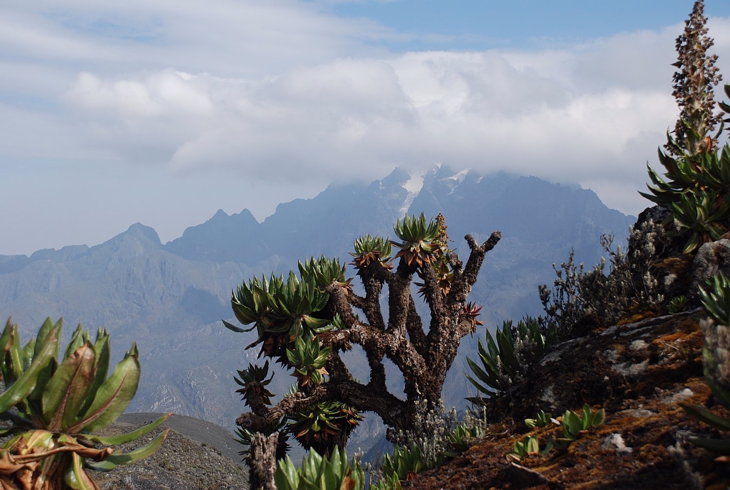 Não é uma cadeia de montanhas extensa, possui pouco menos de 1.000km2. Entretanto, por estar a maior parte do tempo envolvida por nuvens densas, aquele pedaço no coração da África parece um lugar de ilusões e divindades. Curiosamente, Cláudio Ptolomeu o idealizou no início da era cristã ao ouvir estórias de navegadores vindos de Azânia, ao citarem que o Nilo era formado de uma cadeia que reluzia o luar. Ptolomeu acreditou que poderia ser neve e que, ao derreter, formaria o Nilo. E ele não estava errado (apenas seu raciocínio estava incompleto, mas eu precisaria me estender muito aqui). Assim, o Rwenzori tomou a alcunha de “As Montanhas da Lua de Ptolomeu”. Abriga o terceiro ponto mais alto do continente. A 5.109 metros de altitude, o Pico Margherita, pertencente ao Monte Stanley, parece rasgar as nuvens juntamente com seu irmão menor, o Pico Alexandra, a 5.098 metros.
