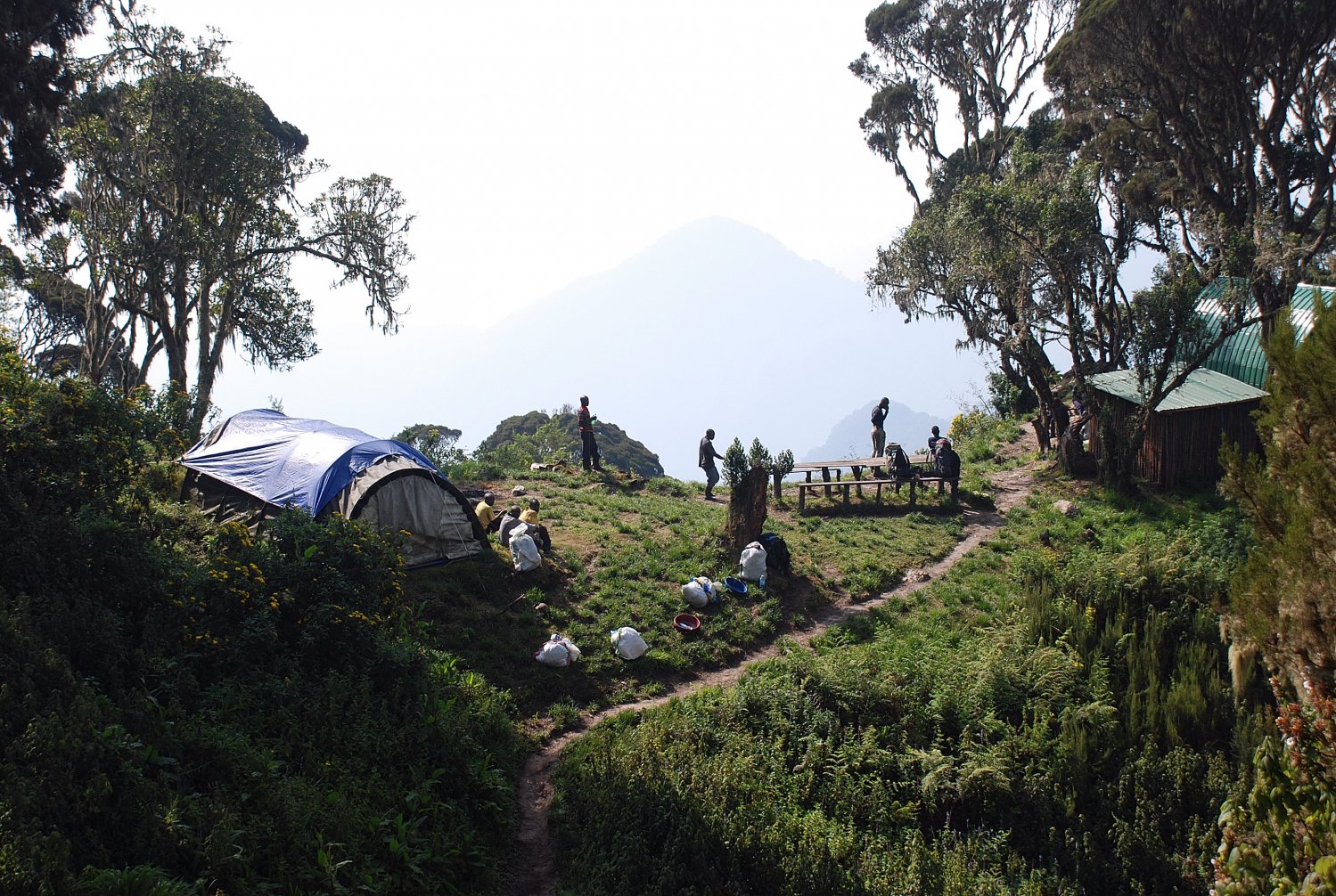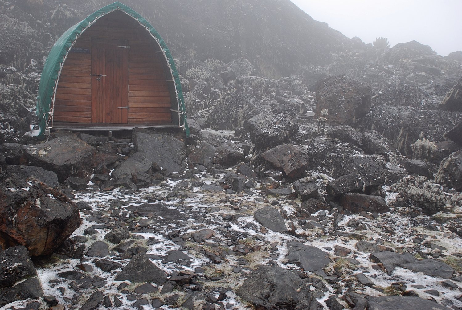 No segundo dia, deixamos a floresta exuberante e chegamos até o frio acampamento Mutinda. O abrigo ficava em uma pequena reentrância na rocha. Estávamos a 3680 metros de altitude para um pernoite com temperatura negativa.