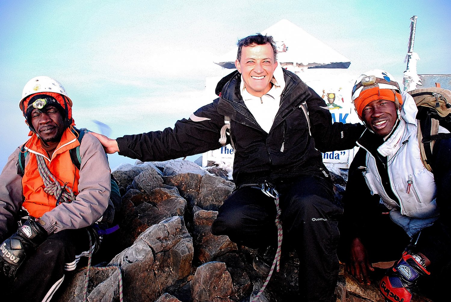 Atravessamos os glaciares Stanley e Margherita, sendo este último o mais íngreme, e cujo fim já marcava o final da ascensão. Poucos metros acima e avistei a placa do cume, o que me trouxe uma alegria indescritível. Arrastei-me por rochas escorregadias devido à fina camada de gelo em sua superfície até que cheguei ao cume. O sol havia acabado de nascer. A placa de cume indicava ser o ponto mais alto de Uganda, mas não havia similar para a República Democrática do Congo. Um lugar de pureza etérea.
