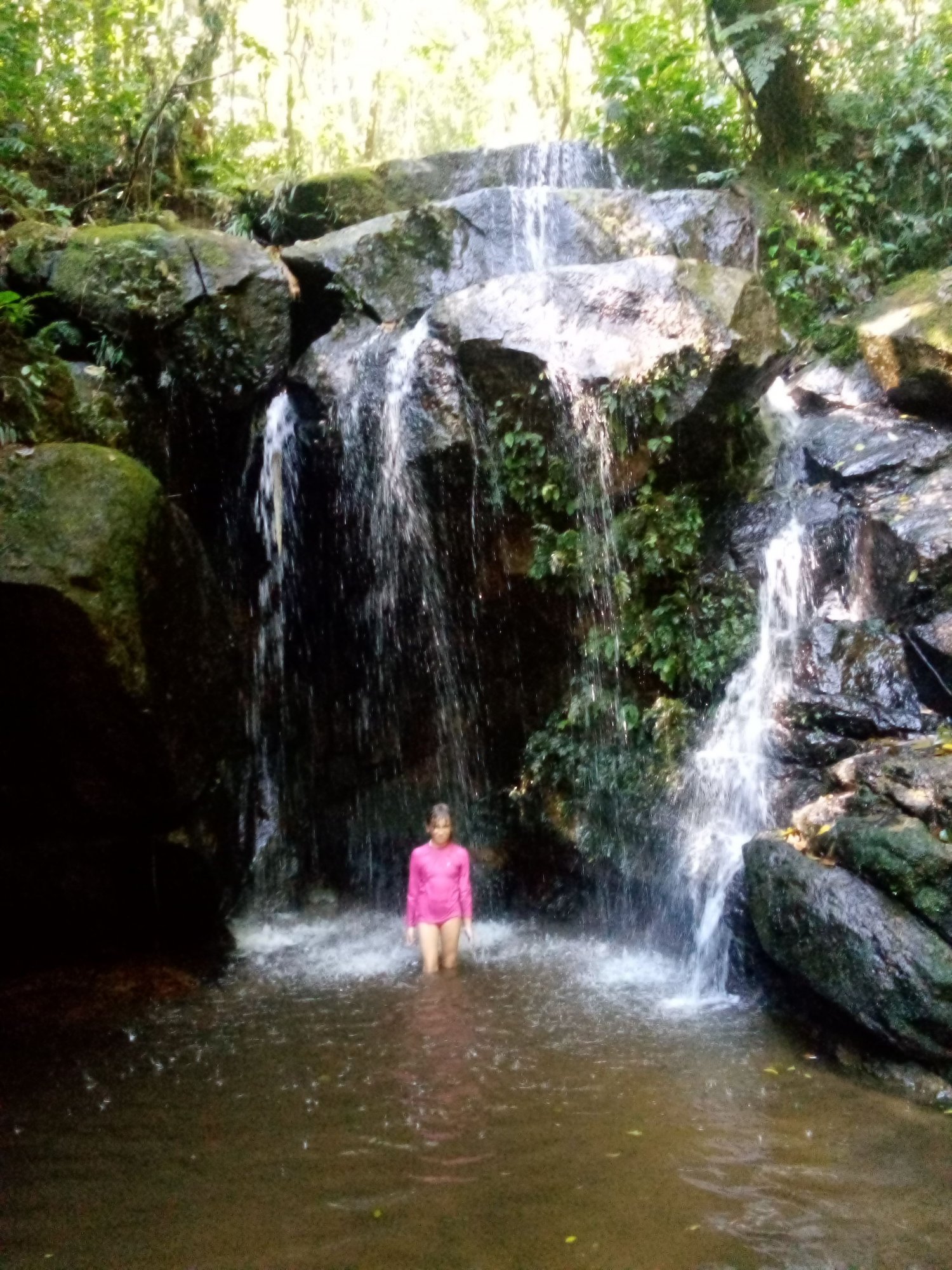 700 metros ida e volta no começo eu não queria entrar na cachoeira mas depois fui até tirei foto