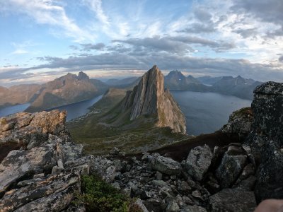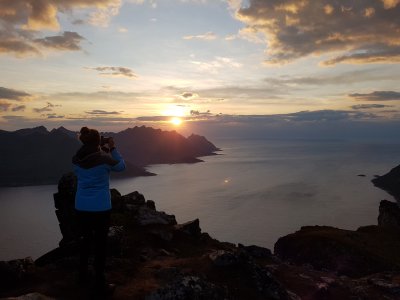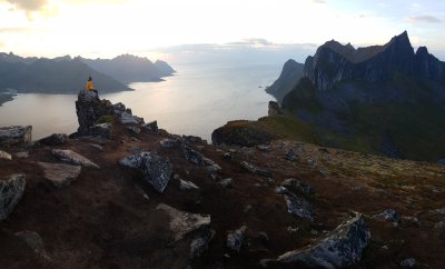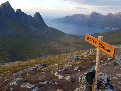 Sua recompensa é uma vista panorâmica de Mefjord e das montanhas próximas. Vale a pena visitar Senja apenas para fazer essa caminhada.