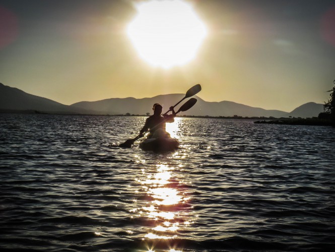 Caminhamos o dia todo, e pra fechar com chave de ouro, uma volta de caiaque ao pôr do sol às margens do Rio Paraguai.