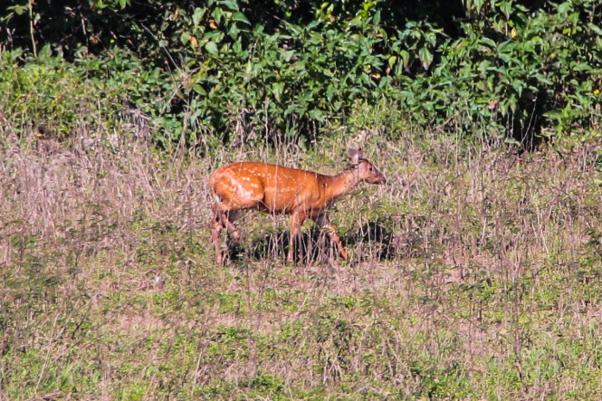 Após banho nas águas cristalinas da piscina natural, retornamos à Acurizal e ficamos fotografando uma revoada de talhamar, tucanos e tuiuiús, ave símbolo do Pantanal. Tivemos também a grata surpresa de avistar um veado pororoca, ali, parado, posando pra foto antes de saltitar mata adentro.