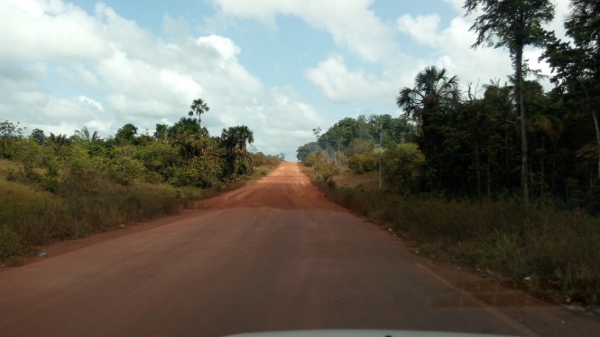 Saí de Macapá cedinho, rumo a Laranjal. O GPS do carro (um Sandero Stepway) ficou meio confuso e acabou me levando para a AP-010 ao invés da BR 156. Na verdade, a AP 010 era asfaltada durante quase todo o seu trecho. Perguntando para os moradores de uma pequena vila como é que se fazia para pegar a BR 156 logo achei a trilha certa. Já não existia mais asfalto, de agora em diante, até Laranjal do Jari, só teria uma estrada de areião batido, que ao passar levantava uma poeira densa. Estava de fato adentrando a Amazônia profunda.