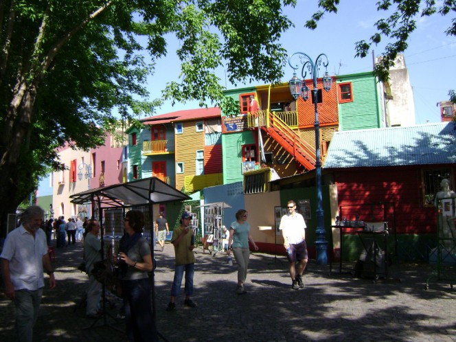 La Boca fica às margens do Rio Riachuelo, o similar Tietê portenho, no pior sentido. É poluído, água escura e espessa...mesmo assim, vários barcos navegam por ali. As casas são todas coloridas, muita gente na rua, turistas procurando atrações, e um monte de gente vendendo de tudo para turistas: é difícil explicar o clima, só estando lá mesmo: sentir La Boca e o Caminito. O bairro é meio barra pesada, mas ao mesmo tempo você sente uma coisa tão familiar, uma energia boa. Eu não sei explicar isso, tem que sentir, viver. Tirei foto como dançarino de tango, andei pelas ruelas cheias de artistas, tudo ali é muito singular e ao mesmo tempo comum a qualquer bairro operário do mundo.