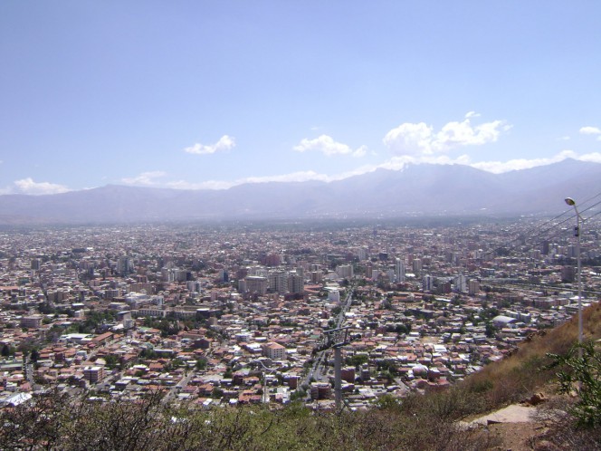 Decidi ir a Sucre esta noite. Fiz umas contas rápidas, vai ficar mais barato, já que o bus para lá só sai as 20h30. Almocei em um restaurante vegetariano chamado Donal (Passaje Fidelia Sanches) por Bs. 19, comendo bem com direito a suco e sobremesa. Na sequência, resolvi encarar a subida do Cristo Redentor. Sim, aqui também tem um Cristo Redentor, e a estátua é bem maior que a do Rio. Encarei uma puta escadaria de centenas de degraus, coisa de 40 minutos subindo. Quase no final, cruzei com dois europeus descendo a escadaria correndo, um todo rasgado. Tinham sido assaltados. Resolvi não arriscar, fiquei por ali mesmo onde estava, a vista ali já era estupenda. Logo desci, o calor em Cochabamba é muito forte, se vacilar você pega até uma insolação.