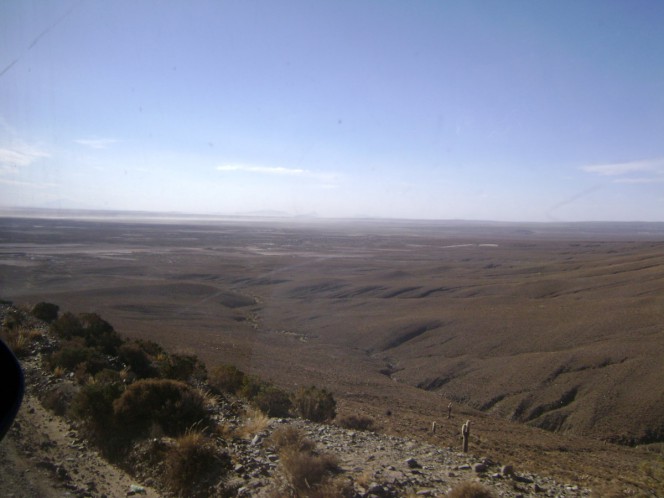 A viagem ate Uyuni não é exatamente fácil: sete horas de viagem, cobrindo 220 km, numa estrada com um terço de pavimentação, e dois terços de terra. O calor, o ar seco, o sacolejo, tudo poderia fazer da viagem um inferno, mas há uma coisa que compensa tudo: a paisagem absolutamente incrível desta região. As montanhas, o céu sempre azul, planícies a perder de vista. É espetacular!