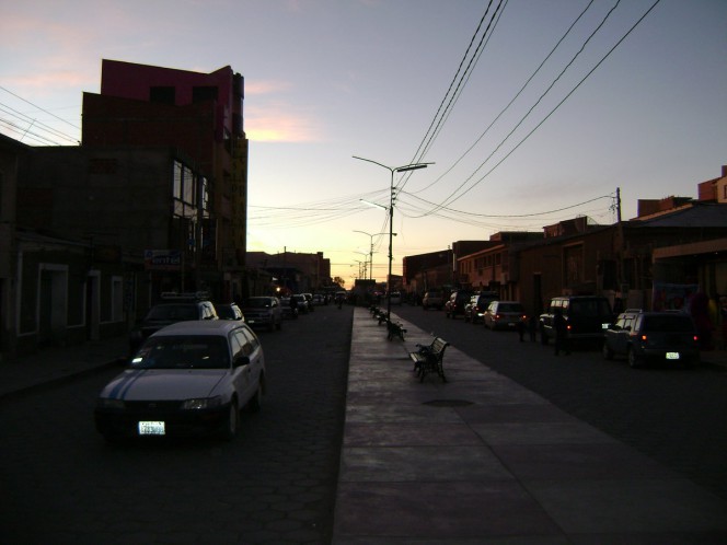 Fui para o Residencial Wara del Salar, tomar um banho e descansar. Logo sai para comer algo, encarei uma chuleta com arroz y papas por Bs. 10. Carne boa e arroz horrível. Ainda comi, em outro lugar, uma hambuerguesa muito boa por outros Bs. 10, e arrematei com uma bombita de dulce de leche por Bs. 2. Antes de dormir, liguei para casa a fim de saber se estava tudo bem.