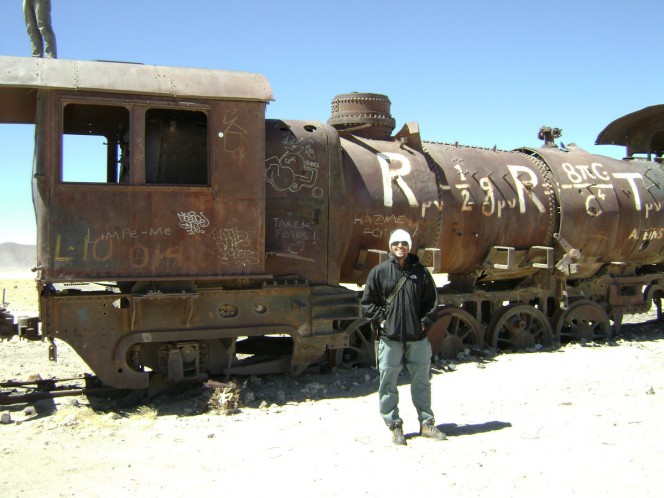Quando se chega a Uyuni, você se dá conta que esta no meio do nada mesmo. A cidade é pequena e totalmente horizontal, cercada pelo deserto, ou seja, nada! A impressão é de terra desolada. O ônibus nem bem encostou, e começou a juntar uma multidão em volta do veículo: são os representantes das agências, oferecendo roteiros para o Salar. Fui "atacado" por duas mulheres oferecendo os serviços, e comecei ali mesmo um leilão: quem oferece mais por menos? A coisa acabou rolando tanto que eu fechei desta maneira: tour de três dias, com esta noite já incluída em um residencial chamado Wara del Salar (calle Bolívar 84), e nos demais dias desayuno, almuerzo e cena, e com hospedagens e transporte também. Tudo por Bs. 550. Achei justo, alem disso o atendimento foi bem honesto na agência Olivos Tour (calle Ferroviária, quase em frente aos baños publicos). Quando estava fechando o tour, chegaram alguns viajantes que fizeram o tour de um dia, entre eles uma brasileira chamada Lilian. Ficamos conversando um pouco, os bolivianos olhando a gente... brasileiro conversando deve ser bem engraçado para eles.