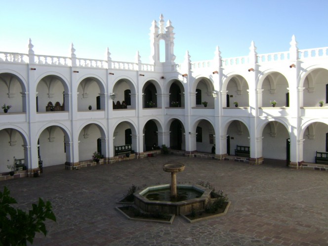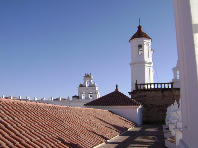 E foi por volta das 15h mesmo que eu me levantei resoluto a ver mais algumas coisas, estava empolgado com tudo aquilo. Acabei entrando e visitando a Casa de la Libertad. Foi lá que a declaração de independência da America foi redigida, e a da Bolívia foi assinada. O lugar é espetacular, e a visita custa Bs. 15, barbada. Foi lá que eu descobri que o primeiro presidente argentino era boliviano, nascido em Tose! (rs). Em seguida, entrei na sede do Departamento de Chuquisaca (sem palavras, belíssimo!) e finalmente o Templo de San Felipe Néri. Esse lugar me impressionou muito. O edifício é de 1795, mas está em perfeitas condições, hoje é um colégio. Por Bs. 10, é possível andar á vontade pelo edifício todo, até o topo, onde há um mirador que te deixa boquiaberto. Valeu cada centavo gasto ali!