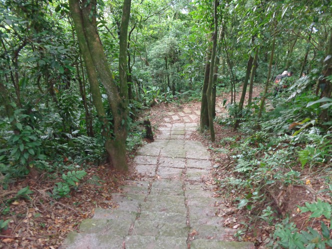 Acabei pegando a Calçada do Lorena e descendo por ela, o que corta um bom caminho e poupa a energia para a subida de volta. Chegamos até ao monumento em homenagem ao então Governador de Província que mandou executar a construção da estrada, Bernardo José Maria de Lorena. A partir dali há duas opções: ou você segue caminho abaixo até a portaria de Cubatão (SP), completando os 9,2 km do caminho, ou retorna subindo o caminho que foi feito até agora. Escolhi a segunda opção, até porque o meu carro estava estacionado na entrada de São Bernardo do Campo.