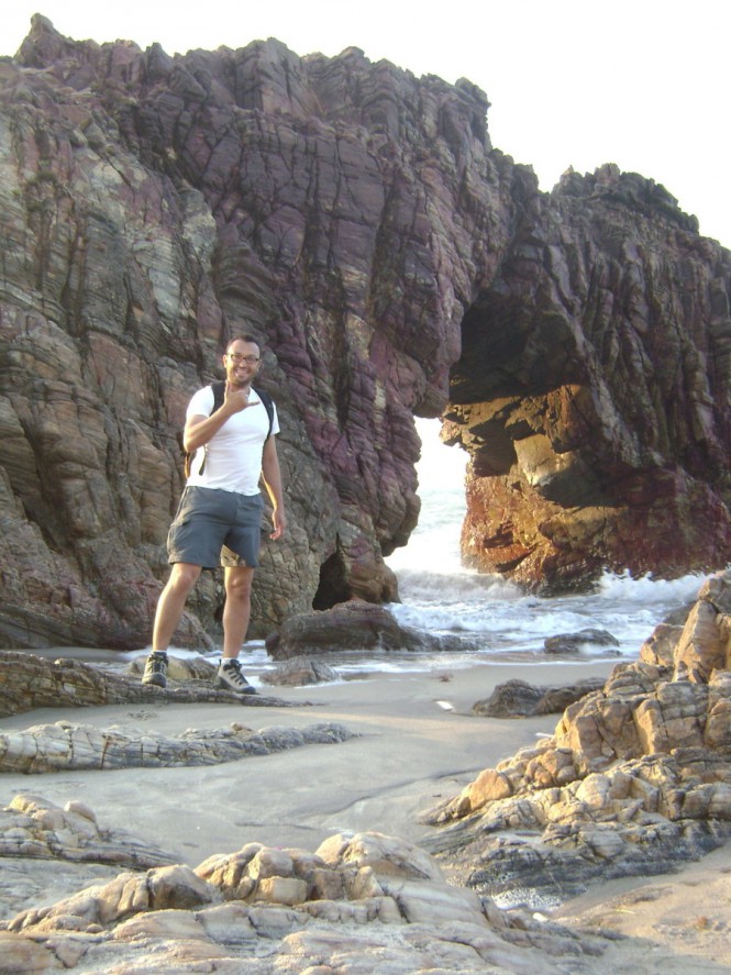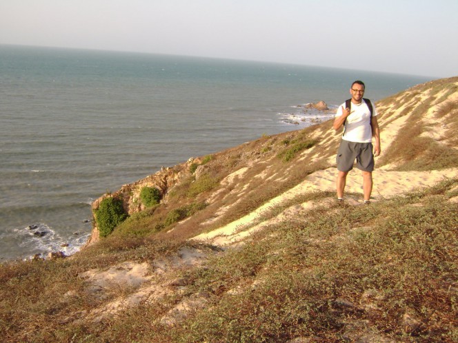 Na seqüência resolvi dar um rolê, aproveitar que estava um pouco mais fresco, e também para tirar esse cansaço do corpo. Resolvi ir até um monumento muito conhecido aqui, a famosa Pedra Furada, marco do Parque Nacional de Jericoacoara. Quando me dirigia para a trilha que me levaria até lá acabei encontrando um casal montanhista amigo meu, Rodrigo e Roberta. O mundo é pequeno mesmo...