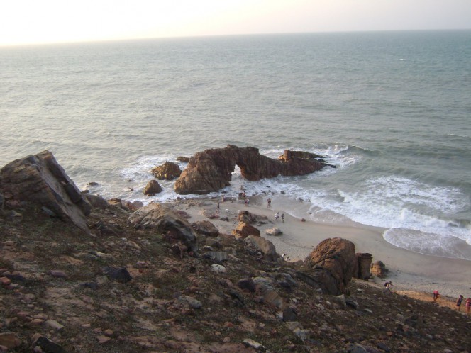 Fui caminhando até a Pedra Furada, um caminho entre morrotes e areia da praia. Em meia hora cheguei lá, e já havia algumas pessoas fazendo fotos. É tipo um arco natural, erodido pelas ondas, interessante se olhado mais de cima do morro, como eu fiz. Aproveitei e fiz algumas fotos do horizonte ao sul e ao norte, além do pôr-do-sol espetacular, um dos mais bonitos que eu já acompanhei.