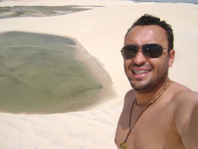 No meio do caminho, apareciam várias lagoas de água doce no meio das dunas. Em muitas vezes eu me imaginei nos Lençois Maranhenses, uma paisagem realmente muito bonita.