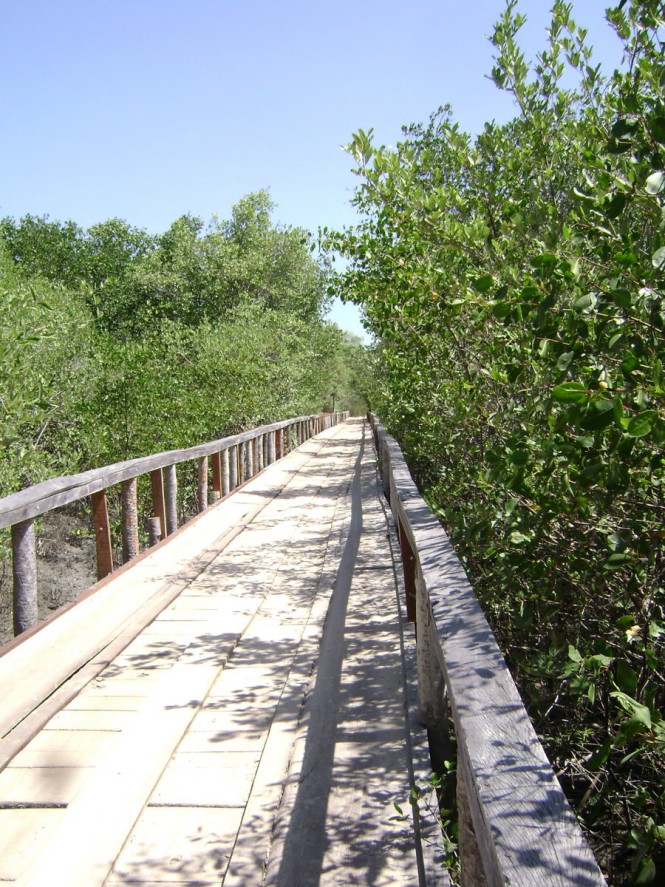 A caminhada pela praia até Guriú é de 9 km, mas pelo vilarejo seria de 14 km. O sol escaldante e o vento incansável, que trazia areia e fazia doer as minhas pernas, eram desgastantes. Logo cheguei a uma placa, que indicava Mangue Seco a 1,5 km. Percebi que estava chegando aos limites do Parque Nacional. Minhas suspeitas se confirmaram quando cruzei com uma guarita do ICMBio (vazia, claro) e uma placa, no sentido no contrário do qual eu vinha, explicava sobre a unidade de conservação. Ali pude ver que estava no caminho certo, e mais perto do que eu supunha. Segui, entrando por uma região de mangue, e passei por uma ponte de madeira, onde pude avistar alguns queixadas (porcos do mato) chafurdando na lama escura.