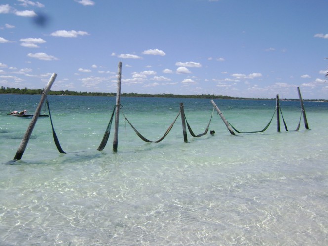 Fui com o grupo (que eu havia vindo desde Fortaleza) até a Lagoa Azul, um lugar difícil de descrever sem comparar com o Caribe, ou algum lugar de águas cristalinas. No meio dessa lagoa existe um banco de areia branca, que é usado como base para o bar molhado. Os preços são turísticos, mas tudo bem, afinal eu estou nessa, não? Estava muito agradável ali, eu realmente estava curtindo. E o melhor, não precisava ir embora, como os colegas de viagem. Quando o guia chamou (eram 13h00, absurdo!) o pessoal foi meio amuado. Eu sorri. Dentro desse esquema, eu estava com uma certa mobilidade. Beleza!