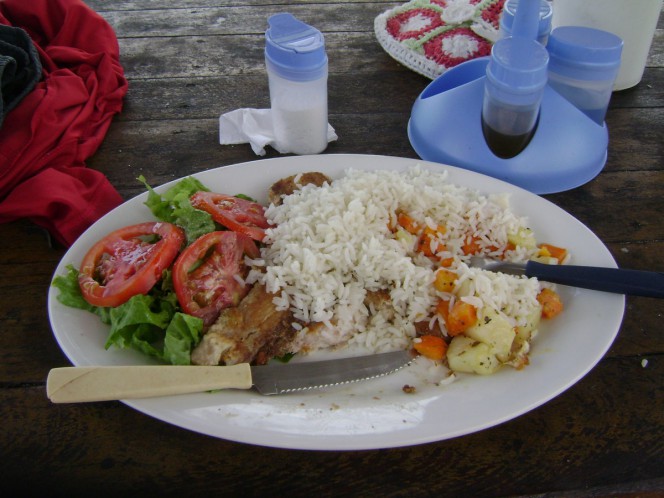 Chegando a Jeri definitivamente, fui acomodado na Pousada Rosas dos Ventos (Travessa Ricardo, 202. Tel.: 88 3669 2092), muito aconchegante, e depois de uma chuveirada gelada que aliviou muito pouco o calor escaldante, fui almoçar no restaurante Sabor da Terra (Rua Principal), por indicação quase obrigatória do guia Roberto. Dei uma chance e não me arrependi: comi um peixe incrivelmente saboroso lá.