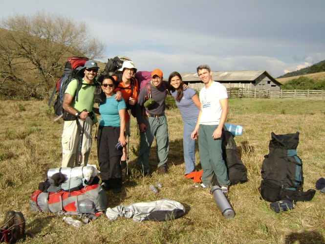 Chegamos a uma espécie de fazenda meio abandonada, junto ao Rio Pelotas, lá pelas 16h, onde parte do grupo (os do Rio, menos o Luís LH) decidiram que iriam voltar para a casa no dia seguinte. Os de Sampa resolveram esperar para ver o tempo pela manhã seguinte, e só então decidir o que fazer. O grupo resolveu acampar e fazer um jantar. Foi muito agradável.