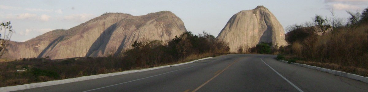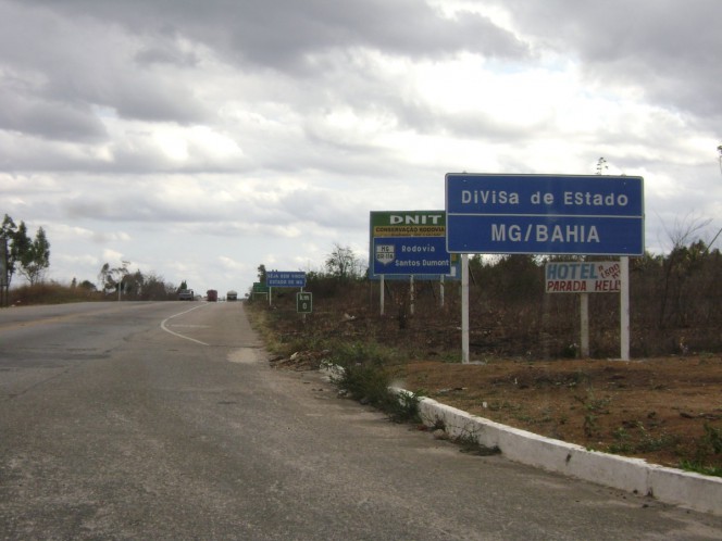Fomos debaixo de chuva um bom tempo, até a divisa com MG pelo menos. Quando cruzamos a divisa, como por encanto, o Sol apareceu. Encantado fiquei eu com as paisagens do norte de Minas / Vale do Jequitinhonha: montanhas, morros, vales. A vegetação um tanto seca (em alguns locais, fazem seis meses que não chove) compõe um cenário muito bonito, árido, mas de uma beleza inegável. Passando por Medina (MG), várias montanhas; em Itaobim (MG) o rio Jequitinhonha é largo, e uma esperança de vida nesse vale agreste. A BR 116 aqui é emoldurada por montanhas, e se torna bem sinuosa.