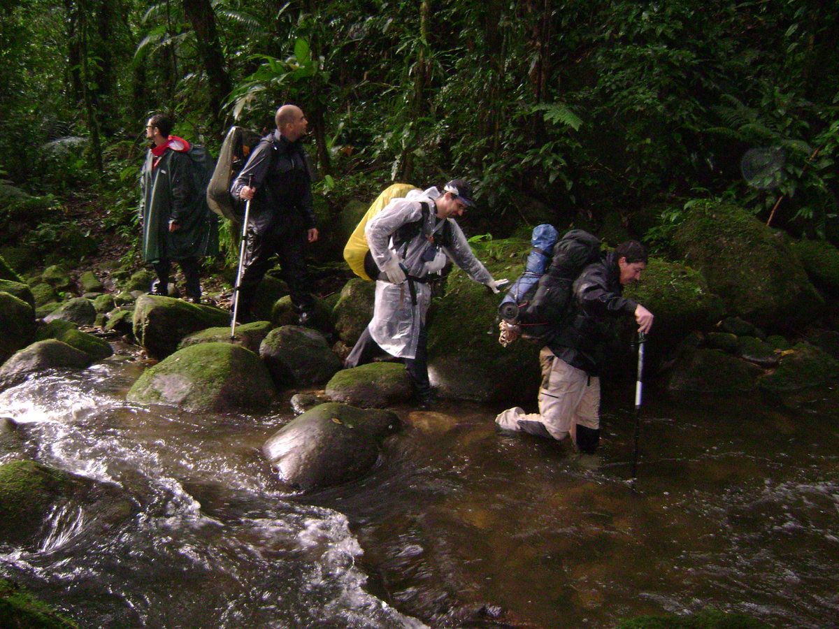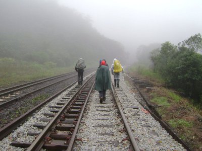Descida pela Serra do Mar, a partir do extremo sul da cidade de São Paulo. Andando pela linha do trem, depois trilha, até Itanhaém (SP).