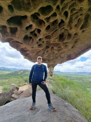 Rapel na Pedra Furada, icônico monumento natural do município de Venturosa, agreste de Pernambuco.