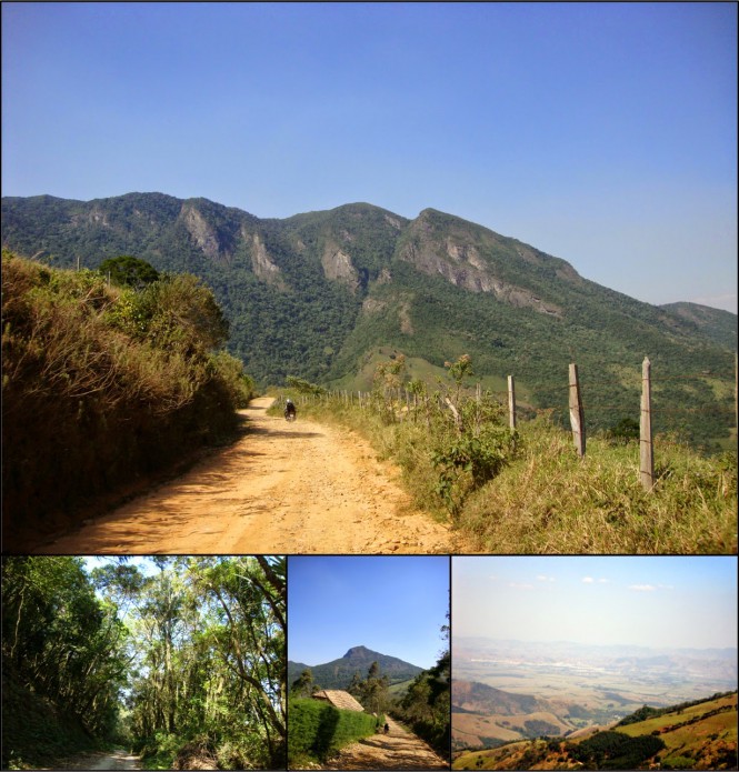 Passamos por uma casa, praticamente toda de vidro e logo iniciamos a descida ladeados por montanhas (entre elas a Pedra Grande e a Pedra do Macaco) e com o amplo visual de Guaratinguetá, Aparecida, Roseira e a cadeia montanhosa de Cunha. A estrada é extremamente sinuosa e toda coberta com pedregulhos do tamanho de uma bola de basquete, trecho este que era vencido sem problemas pela picape (teríamos muita dificuldade em caminhar nesse trecho). A viagem foi bastante divertida – off road no Gomeral...