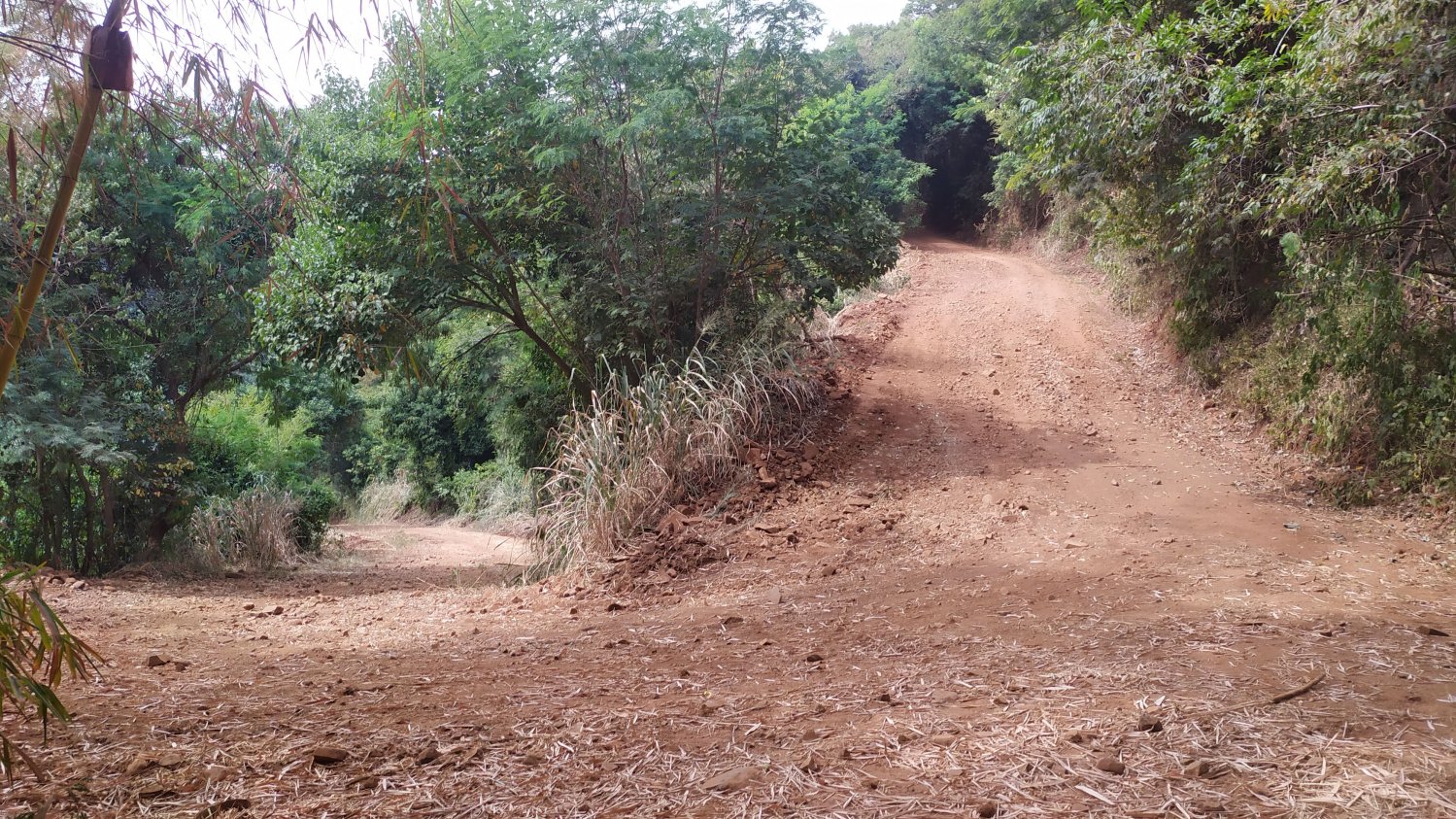 Uma subida muito íngreme com pedras soltas e areia em diversos pontos em que empurrar a bicicleta foi constante.