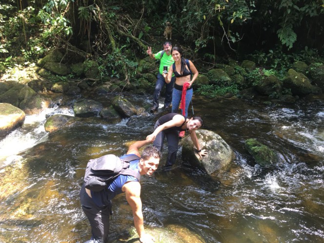 Cruzamos o rio por cima das pedras escorregadias e qualquer deslize o banho gelado tava garantido.