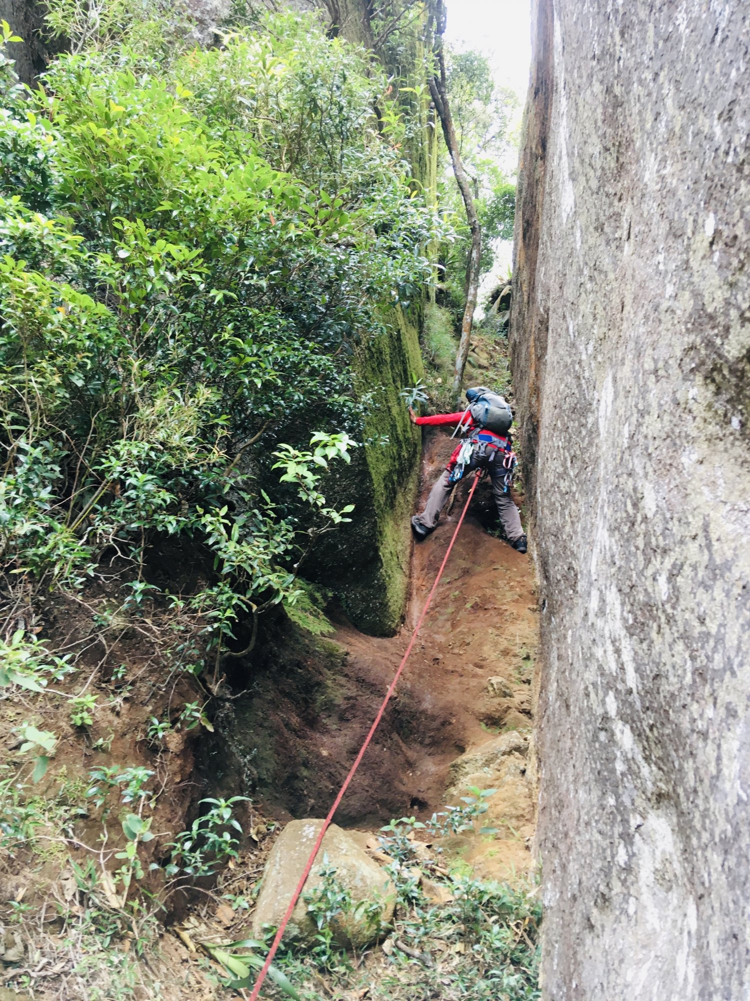 Adentrando a mata e a trilha já começa a subir, bem igreme, subimos por 2.5km levamos em torno de 2h30min ate a base de pedra que dá início a escalada.