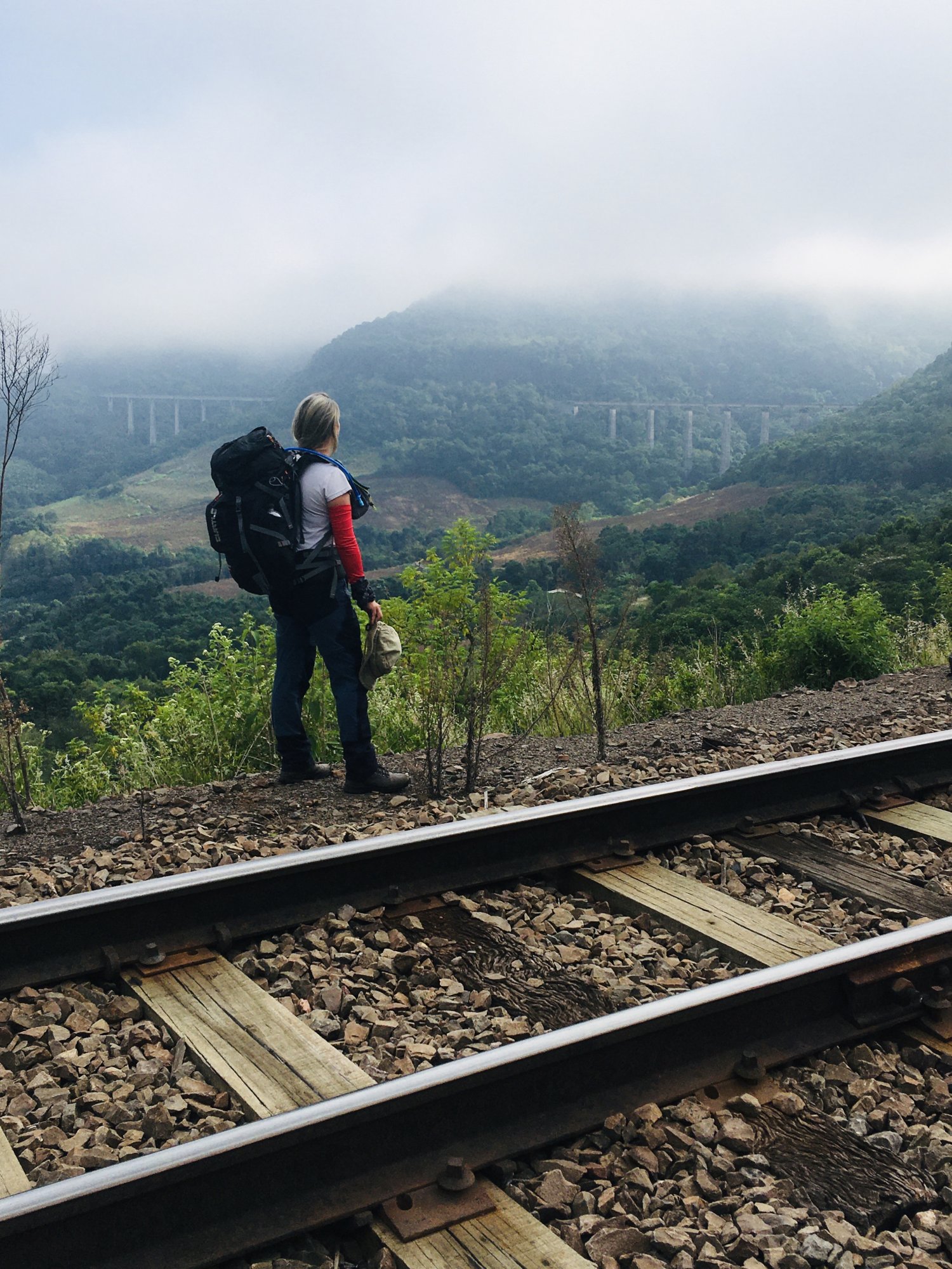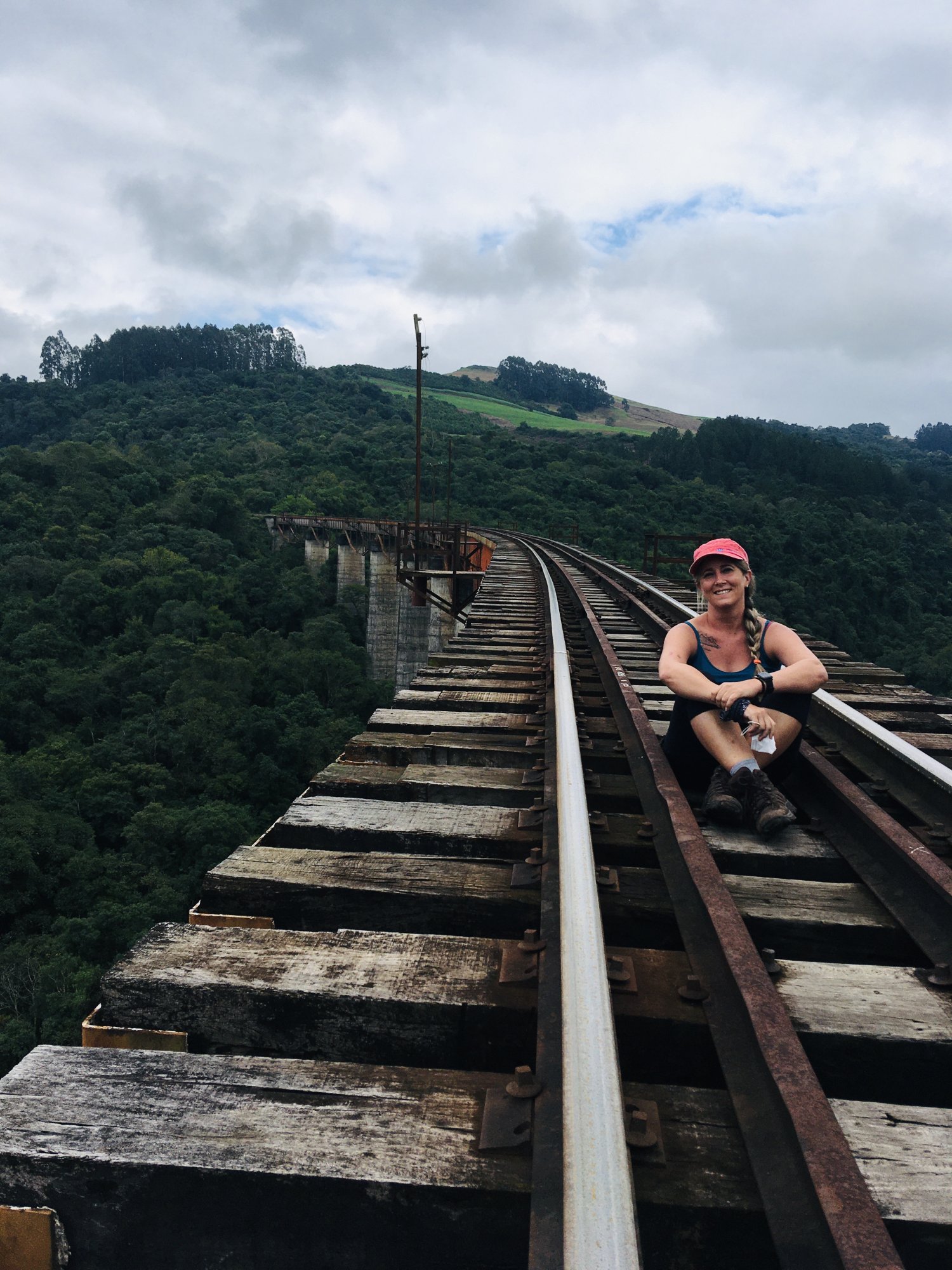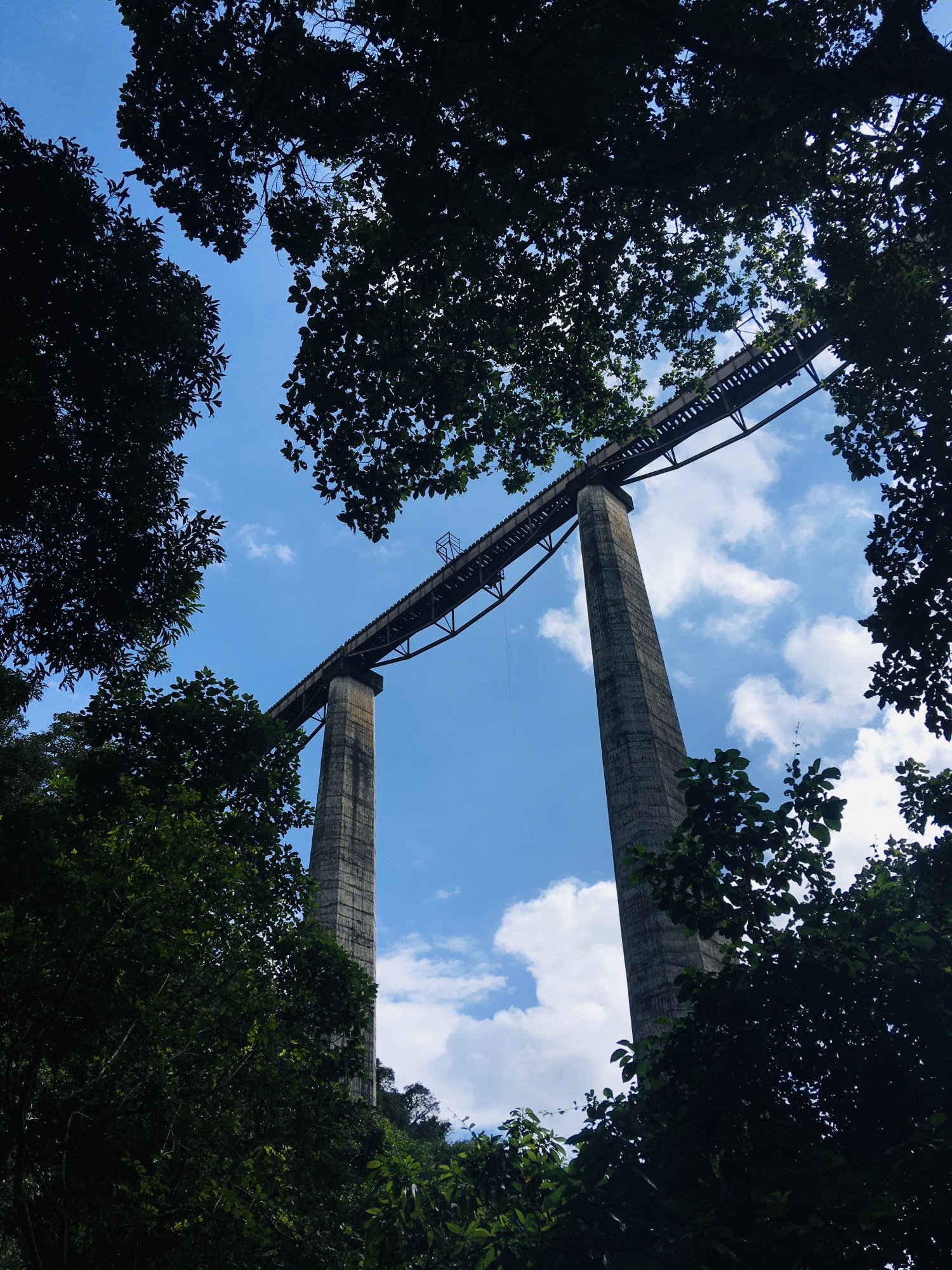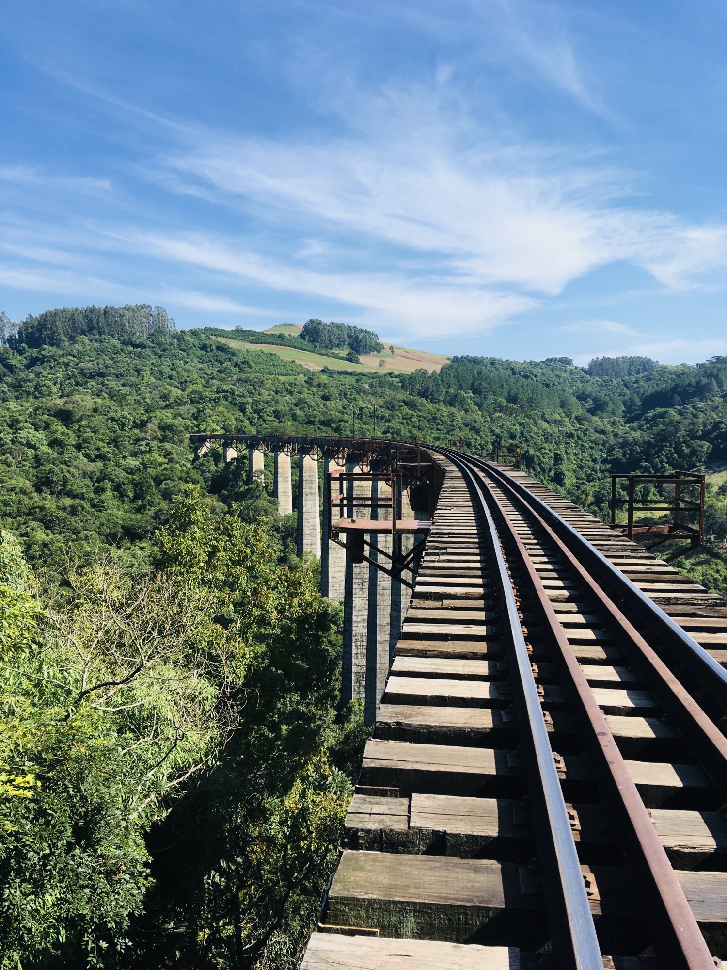 Caminhamos uns 8km e chegamos no vazado Mula Preta, com 360m de comprimento e 98m de altura é uma experiência indescritível atravessar este viaduto, passo a passo em cima dos dormentes e abaixo nada, só a vegetação, não possui guarda-corpo nas laterais e os refúgios são poucos, já pensou se o trem vem 😱🚂.
