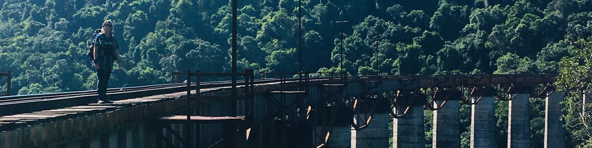 Caminhamos uns 8km e chegamos no vazado Mula Preta, com 360m de comprimento e 98m de altura é uma experiência indescritível atravessar este viaduto, passo a passo em cima dos dormentes e abaixo nada, só a vegetação, não possui guarda-corpo nas laterais e os refúgios são poucos, já pensou se o trem vem 😱🚂.