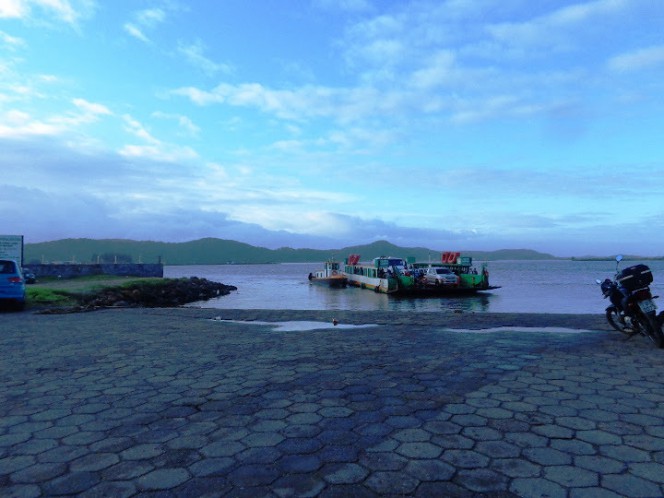 Pelo nosso planejamento, ficaríamos na rodoviária de 07h da manhã até às 10:20h esperando o ônibus da linha de turismo (saídas às 10h20, 12h, 14h30, 16h30 e 18h10) que faz a ligação direta da rodoviária de Laguna com o Farol de Santa Marta. Teríamos que esperar cerca de 4 horas, uma perda de tempo. Então nos informamos com alguns motoristas de ônibus da cidade e eles nos disseram que poderíamos pegar a linha “Mar Grosso” e soltaríamos perto da parada da balsa que faz a travessia da Barra. E depois da travessia de balsa bastava aguardar o ônibus que faz a conexão da balsa até o Farol de Santa Marta (saídas às 06:20 e 08:30). Assim ao invés de chegarmos na pousada ao meio dia chegaríamos às 09:30, aproximadamente. Moleza!