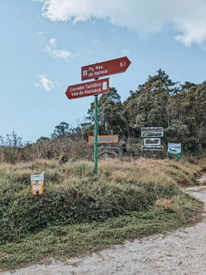 Bifurcação do início da estrada rumo ao parque nacional Itatiaia.