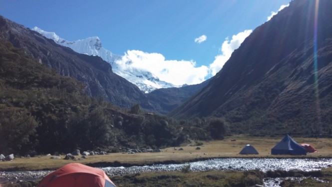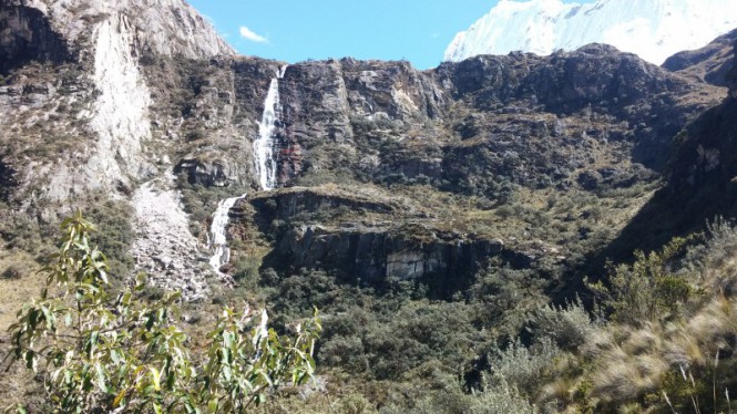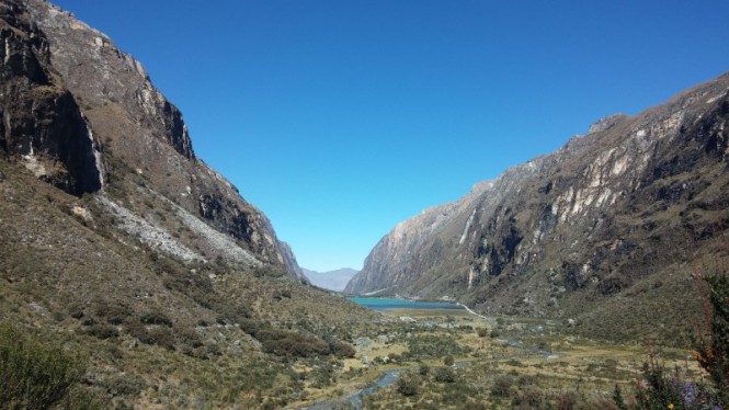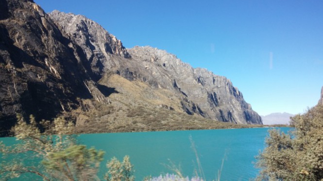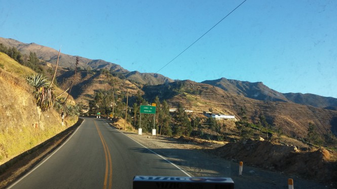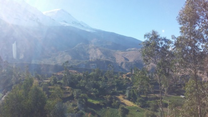 Quando o dia começou a amanhecer consegui ver como era Huaraz. É uma cidade típica Peruana, porém, ela é cercada por picos nevados, aqueles com pontas brancas. É fantástico a sensação. Descemos e pegamos a estrada e eu embasbacado com as paisagens da estrada. Lembro de ter visto alguns campings e hostels no caminho, descendo. Passamos por umas cidades pequenas e entramos em outra bem pequena, após isso pegamos uma estrada bem estreita e sinuosa e começamos a subir.