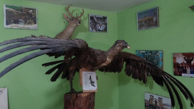 Subimos, subimos e subimos mais. Depois de mais de uma hora paramos na entrada do parque. Lá tem que ser pago uma taxa para entrada no parque. O bilhete do dia custa 10 Soles, já o bilhete que tem duração de 22 dias custa 65 Soles. Esse último é usado para quem vai fazer algum trekking lá, como o Circuito HuayHuash ou outros trekkings. Eu iria começar o Trekking Santa Cruz no sábado(era quinta), por isso comprei o de 65 soles. O pessoal que só iria visitar a laguna no dia pagou 10. Quando fui pagar o meu, vi um condor enorme empalhado. Pensa numa ave grande !!!