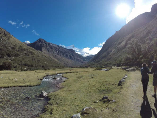 A trilha começa tranquila, mole mole fácil fácil com uma leve inclinação. Como havia acabado de chegar em Huaraz, fiquei meio tenso por causa da altura e também por estar me recuperando de uma quase pneumonia que peguei nos -25º C do Salar de Uyuni. Mas vamos que vamos, trilheiro que é trilheiro não se da por vencido.
