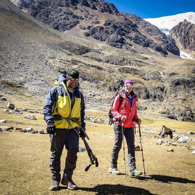 A caminhada era muito agradável, através de um de um vale com vegetação rasteira, cruzando duas pequenas quedas d’água. Vários rebanhos de llamas, alpacas e ovelhas completavam a paisagem pitoresca dos Andes.