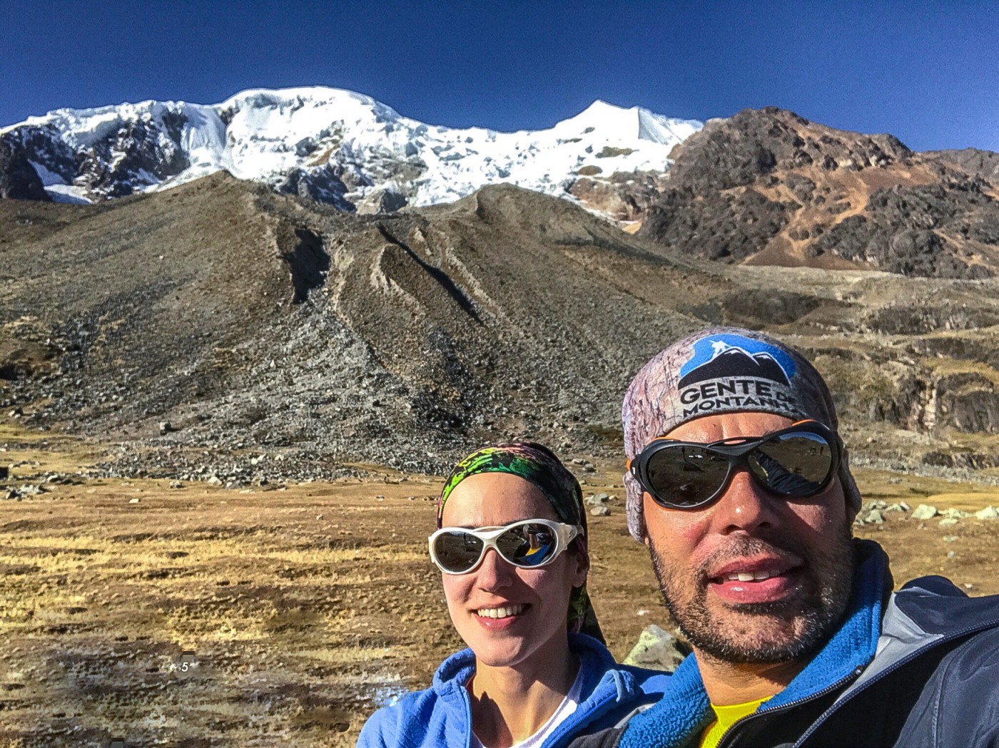 A primeira parte da trilha é uma caminhada leve, em curvas de nível, À medida em que íamos subindo, já era possível ver lá embaixo nosso acampamento e a Laguna Chiarkota. O dia estava ensolarado, sem vento. Nos sentíamos muito bem e pudemos seguir num ritmo bom. Apesar de se tornar mais íngreme na segunda metade do caminho, a subida não era muito acentuada em nenhum momento e a trilha não oferecia dificuldade técnica.