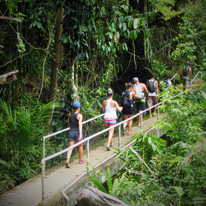 No domingo, ah, não tinha o mesmo sol do primeiro dia, mas se fosse pra escolher não tinha melhor clima pra acontecer, pois era o dia de uma caminhada mais longa pelas costeiras e matas até chegar na cachoeira do rio Grande. Depois de aproveitar um novo habitat, uma mistura de mangue e floresta tropical a poucos metros do litoral, uma convidativa garoa nos acompanhou no caminho de volta. Era mesmo um privilégio caminhar sob a brisa molhada que deixava pra trás o mormaço que nos fazia suar.