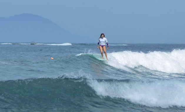 Renata Porcaro com seu estilo inconfundível dançando, deslizando e se divertindo sobre as ondas.