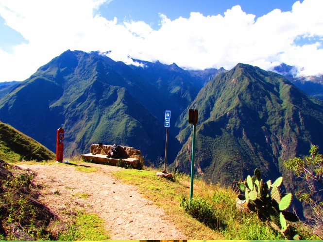 Panorama do mirador Capuliyoc. Abaixo, o rio Apurímac. O objetivo do primeiro dia é chegar até às margens do rio láááá embaixo.