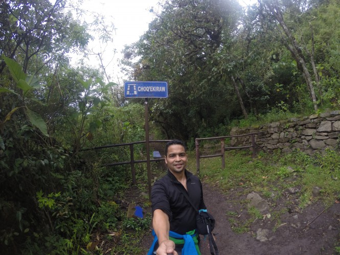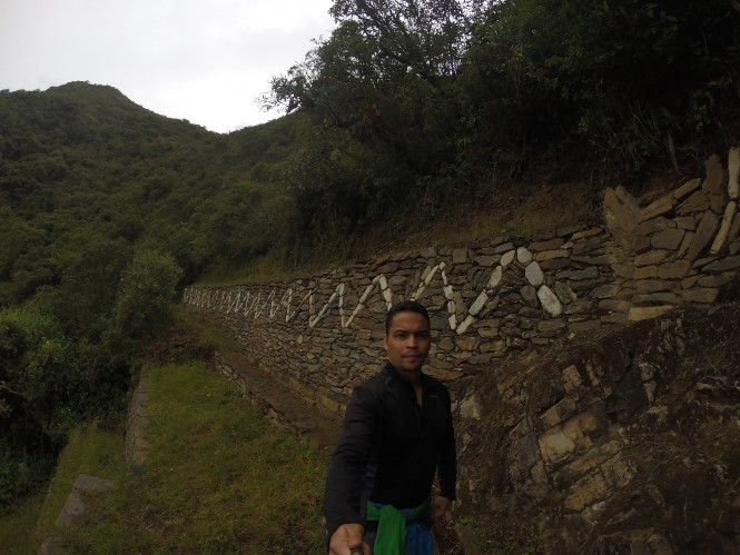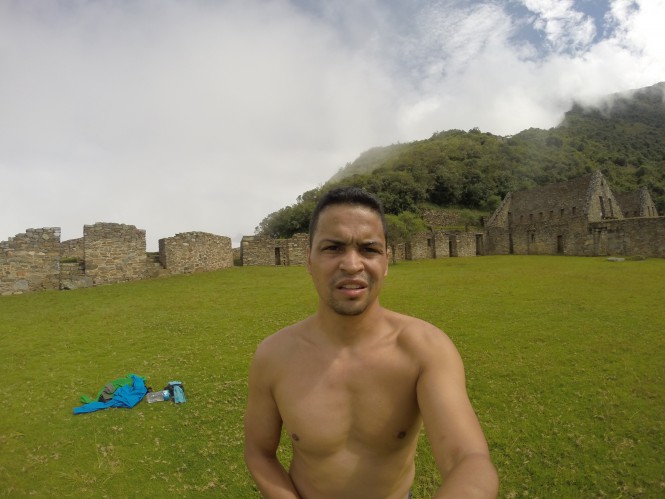Dia 03: O dia amanheceu lindo. As 06:00 já estava de pé e uma hora depois parti para Choque. A trilha até lá é um passeio. Ela vai serpenteando uma enorme encosta, coberta de densa floresta e cortada por algumas cachoeiras. No trecho de ida ela quase não tem subidas, vc anda reto ou descendo quase o tempo todo. Para mim foi ótimo porque ainda estava cansado e com o corpo dolorido da puxada do dia anterior. Após cerca de 01:10min de caminhada, cheguei na cidadela. Chega-se por uma grande área de plantio, aquelas estruturas de pedra em degraus que os Incas utilizavam para cultivar diferentes culturas vegetais. As da entrada são enormes, bem maiores que as de M.P.