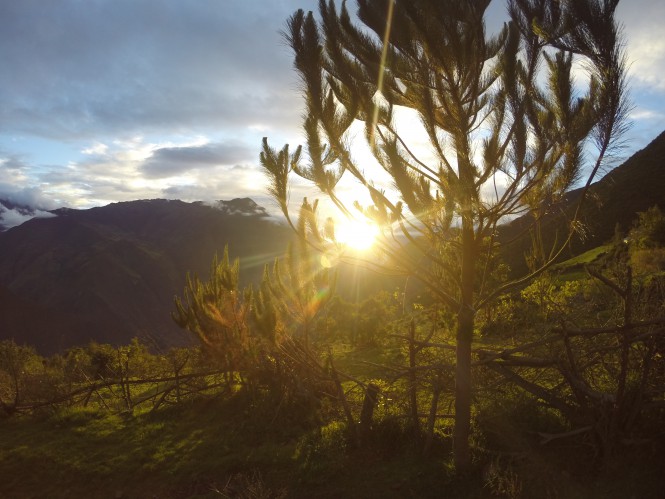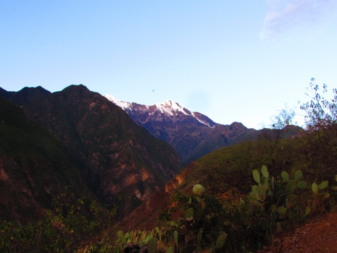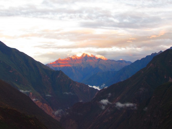 Um pouquinho do vale do Apurímac com o belo nevado Ampay ao fundo. Entardecer do terceiro dia de trilha.