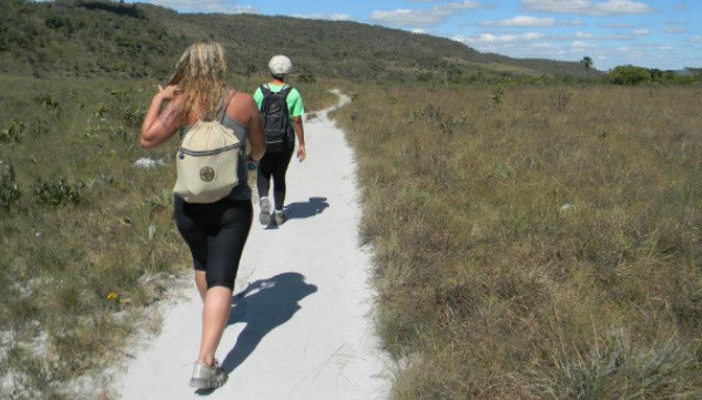 Da entrada até a Santa Bárbara são mais ou menos 12 km ida e volta. Logo no início da trilha atravessamos um rio que dependendo da época do ano está mais cheio ou mais vazio mas não se preocupe porque é bem tranquilo. O cenário fica por conta da vegetação diferente que o cerrado nos proporciona, com sorte terá a oportunidade de ver tucanos embelezando ainda mais a paisagem. Lembrando que é uma caminhada tranquila onde a maior parte é plana e não possui quase nenhum desnível.