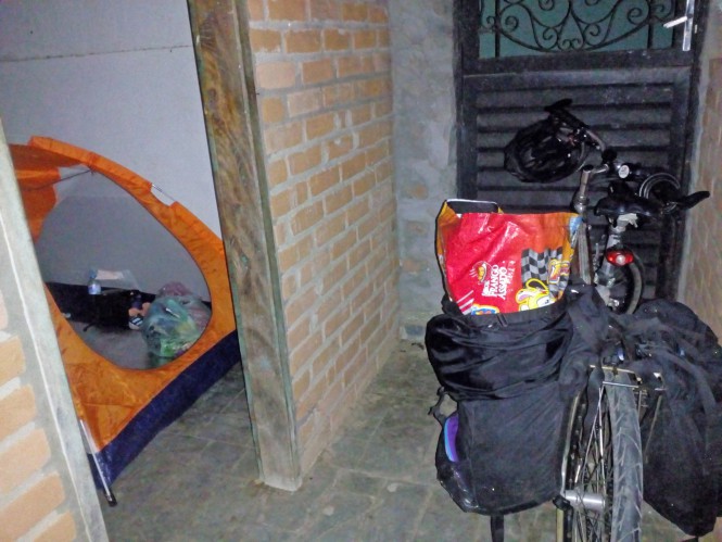 Acordamos e fomos fazer nosso café com rapadura e granola na prainha, com sabão de coco lavei umas peças de roupa pro dia seguinte no rio, voltamos e levantamos acampamento umas 8h30, pedi para a Renilda ficar com o cachorrinho, ela tentou, colocou ele num quartinho, mas depois de uma hora de pedal lá apareceu o cachorrinho na minha perna kkkk. Nesse dia ia dando 18h já e nada de chegar em lugar nenhum rs, surgiu uma casa, chamamos, ninguém, passou uma moto e perguntamos quem morava ali, o moço falou que ninguém, decidimos ficar acampados na varanda, tinha muita plantação, um pé de onde pegamos goiaba e xuxu no dia seguinte, tudo beleza montamos a barraca quando meu amigo falou, tem uma cobra aqui, lutou engraçadamente com a cobra jogando uma garrafa de água pra ela sair da varanda onde ele ia por a barraca, era "filhotinha", parecia cascavel, armou o bote mas fugiu e eu só ouvindo tudo de dentro da minha barraca e rindo muito kkk, naquela noite não teve janta rs, ninguém quis sair pra ver se a cobra tinha ido embora, fora a lacraia que também vimos...