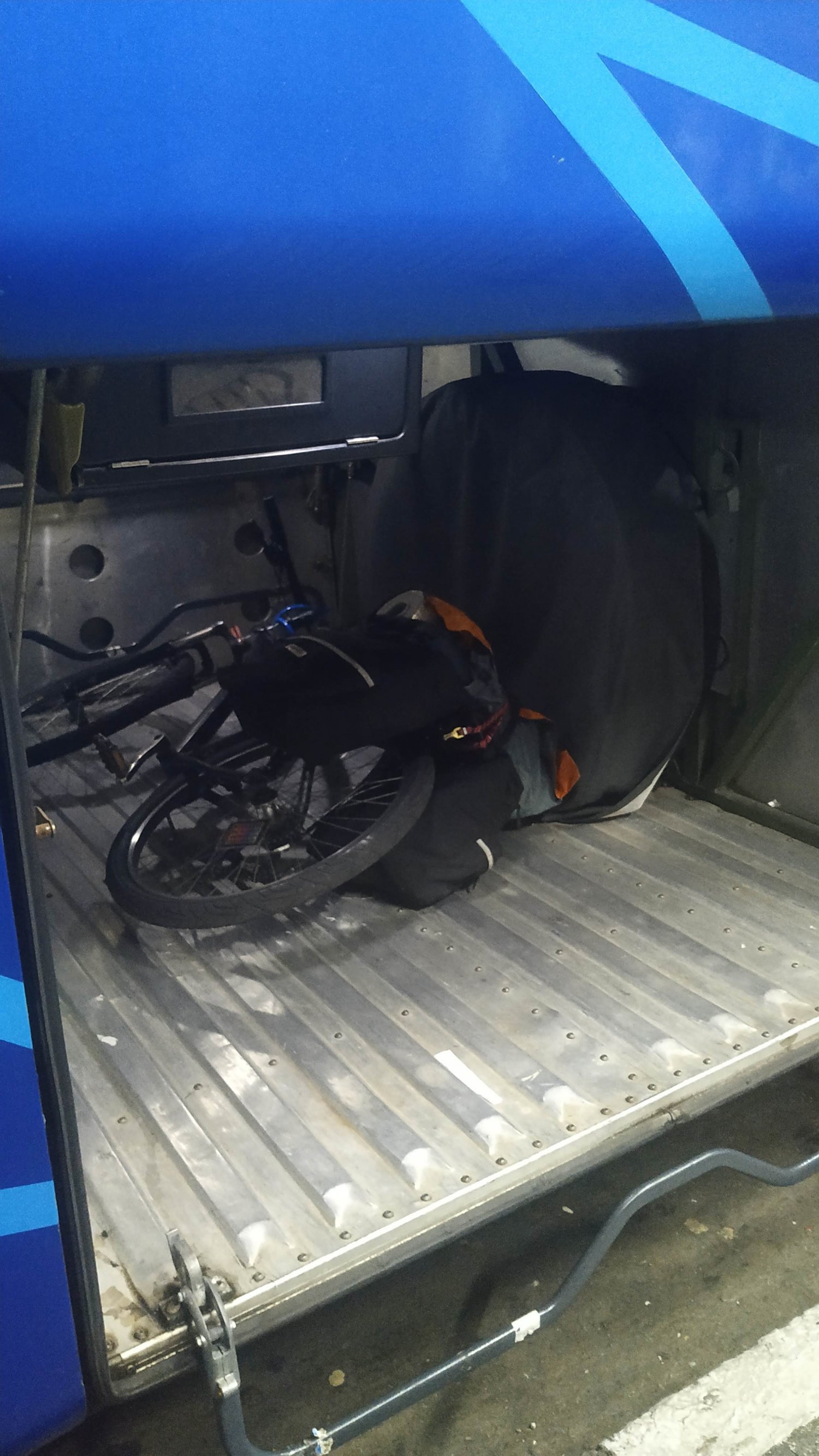 Achei uma bicicletaria fechada, bati palmas, e o dono veio e me ajudou dando uma caixa de bike mesmo, com outras caixas que arrumei em um mercado já dava pra embalar a bike. Voltei ao hostel, tirei as rodas, abaixei o banco e coloquei na caixa, vi que era muito fácil e decidi montar de novo e só desmontar em frente o ônibus.