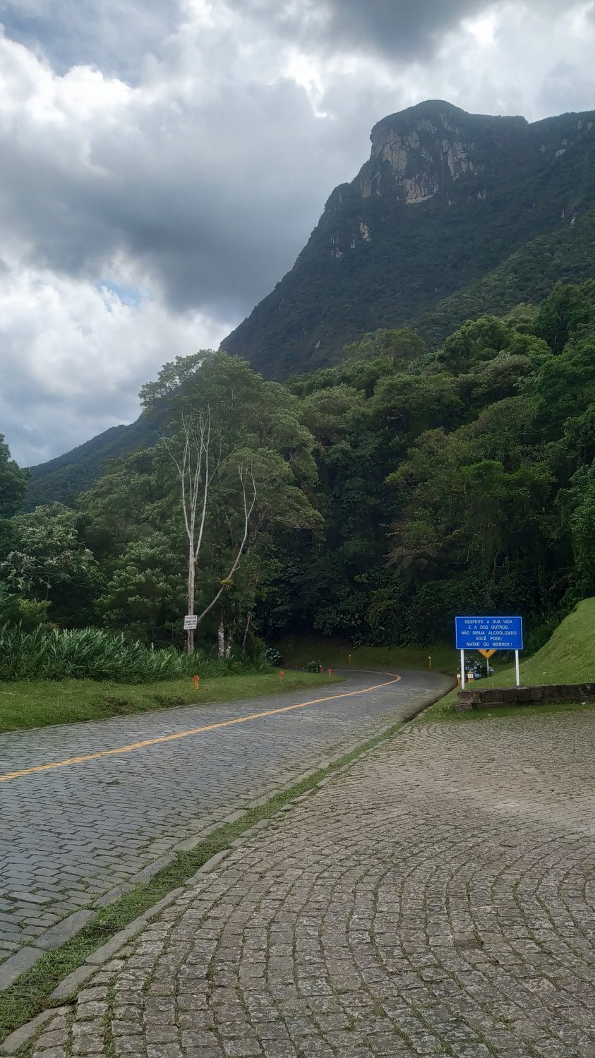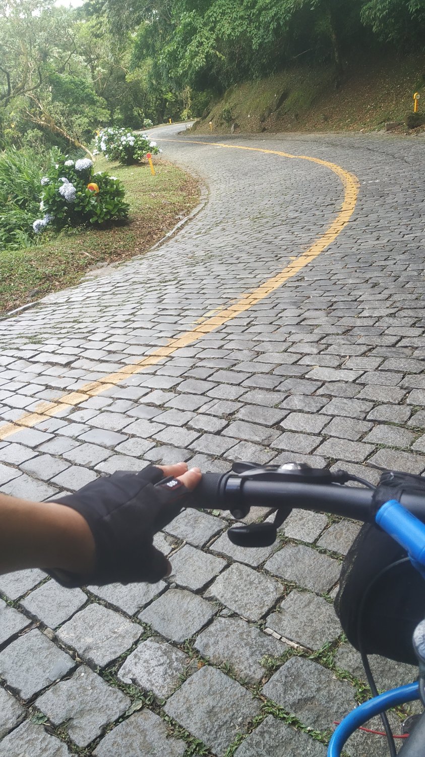 Ao fim da trilha do Alemão finalmente, cai na serra da graciosa, comecei a descer em asfalto e logo virou paralelepipedo, não é inteira de paralelepípedo...